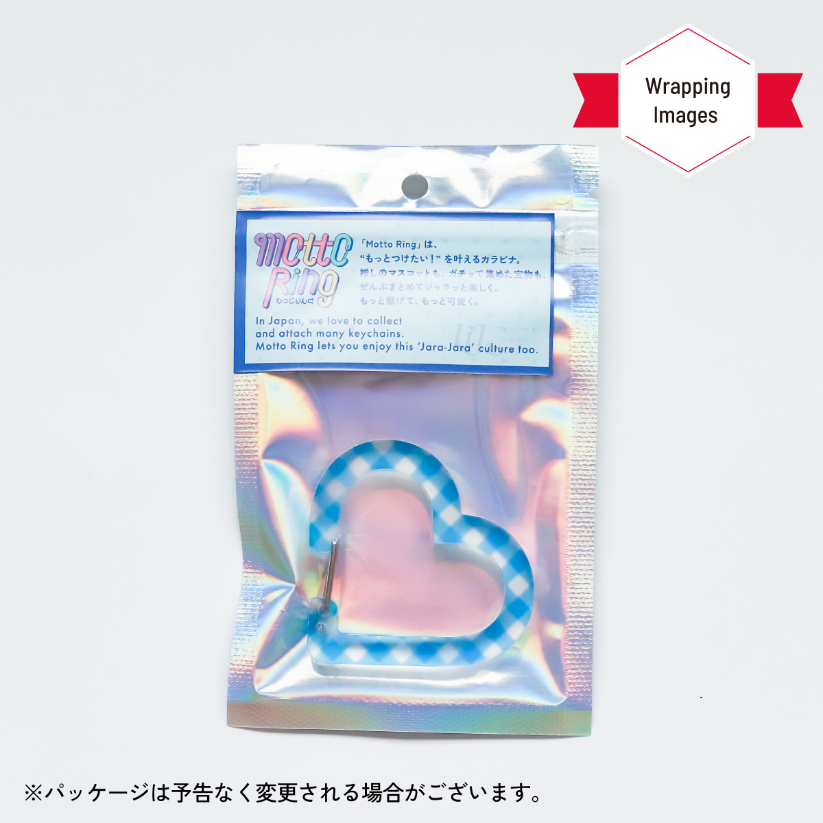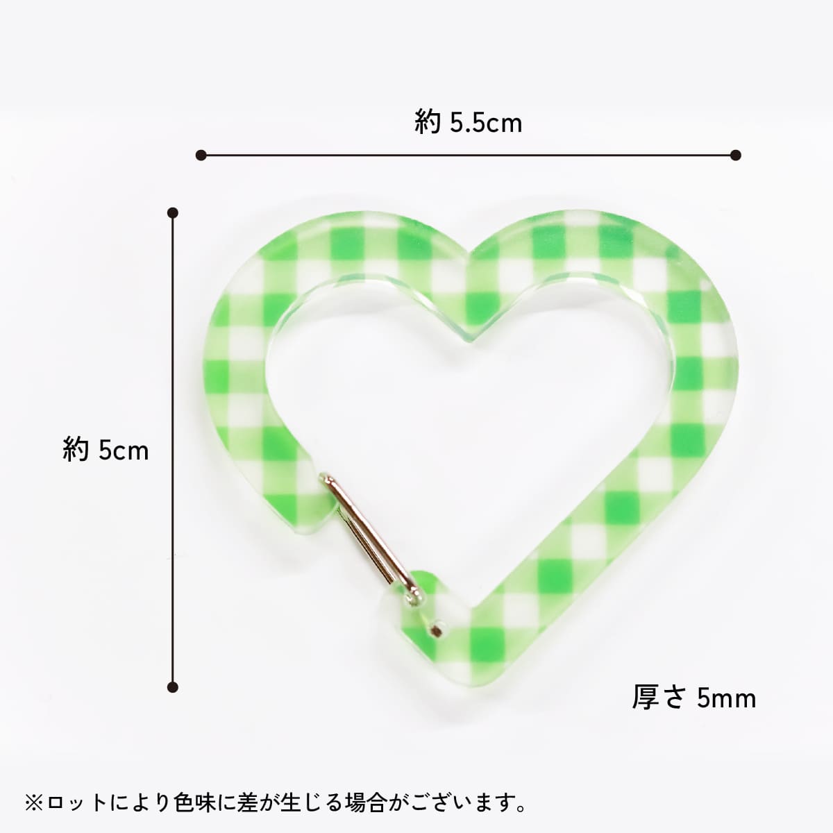 ギンガム柄がかわいいハートのアクリル製カラビナキーホルダー。