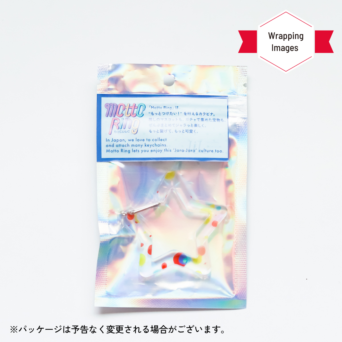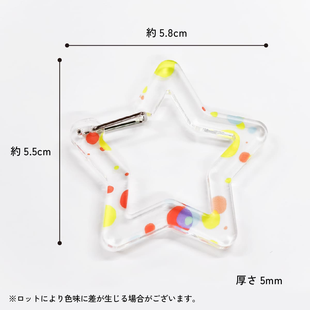 ポップな柄がかわいい星のアクリル製カラビナキーホルダー。