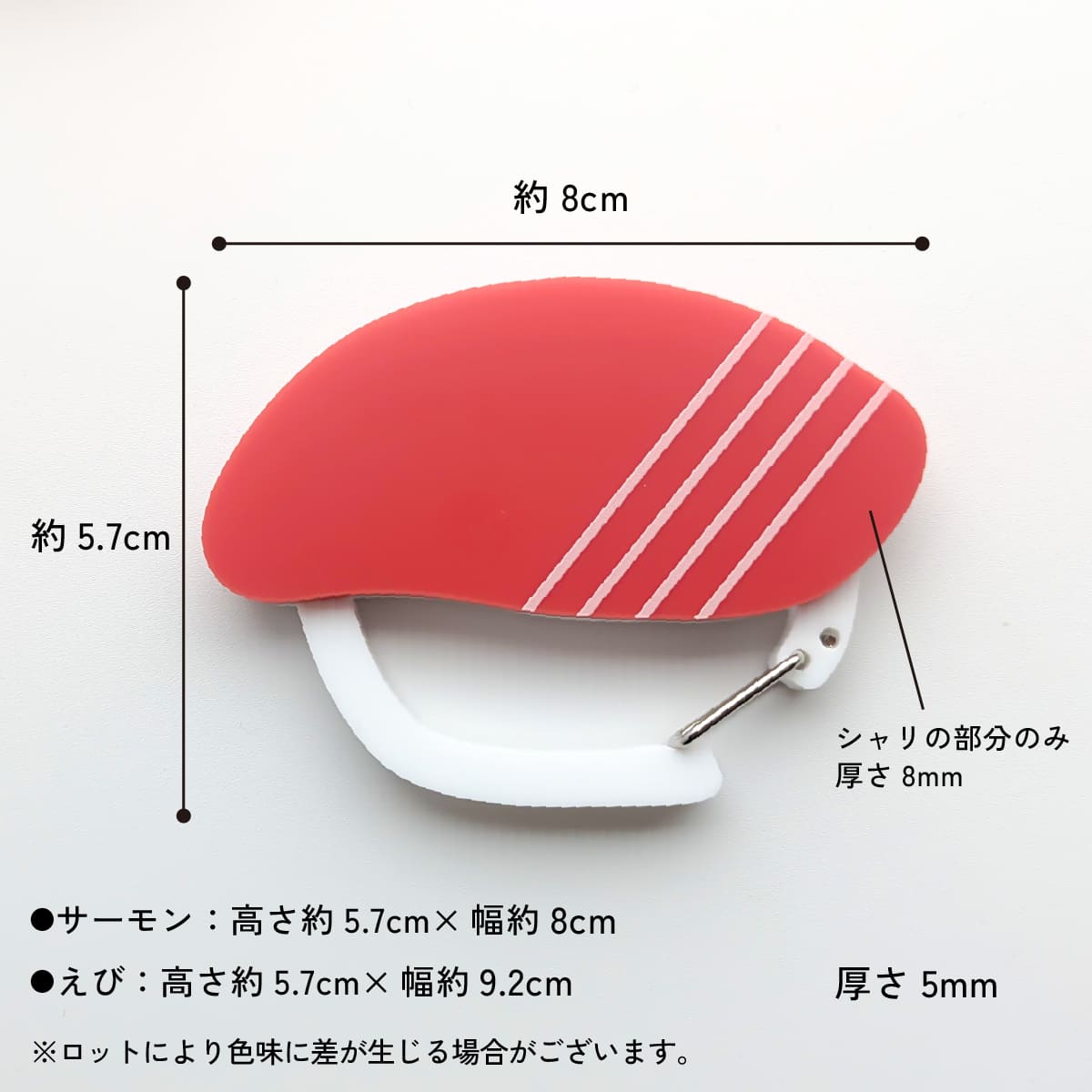 | サイズ | まぐろ:幅約8cm×高さ約5.7cm、厚さ8mm サーモン:幅約8cm×高さ約5.7cm、厚さ8mm えび:幅約9.2cm×高さ約5.7cm、厚さ8mm |