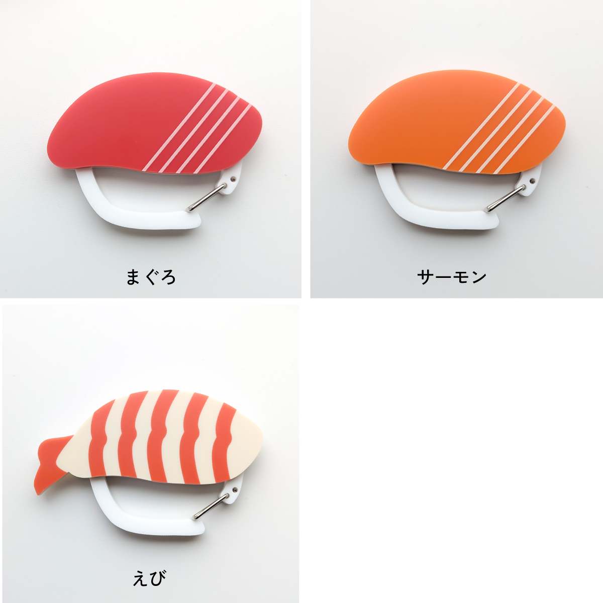 バッグにつけやすい、まるでお寿司みたいなカラビナ。