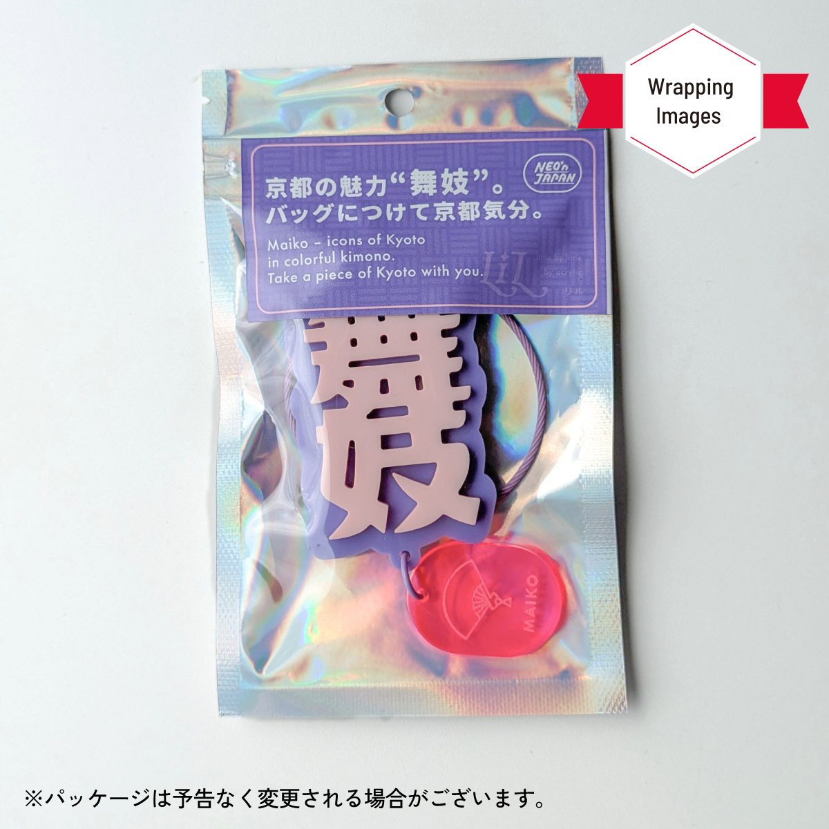 ネオンピンクの小判型チャームにアイコンと英字を添えて、日本文化をポップに再解釈。