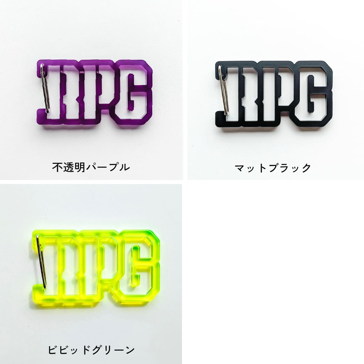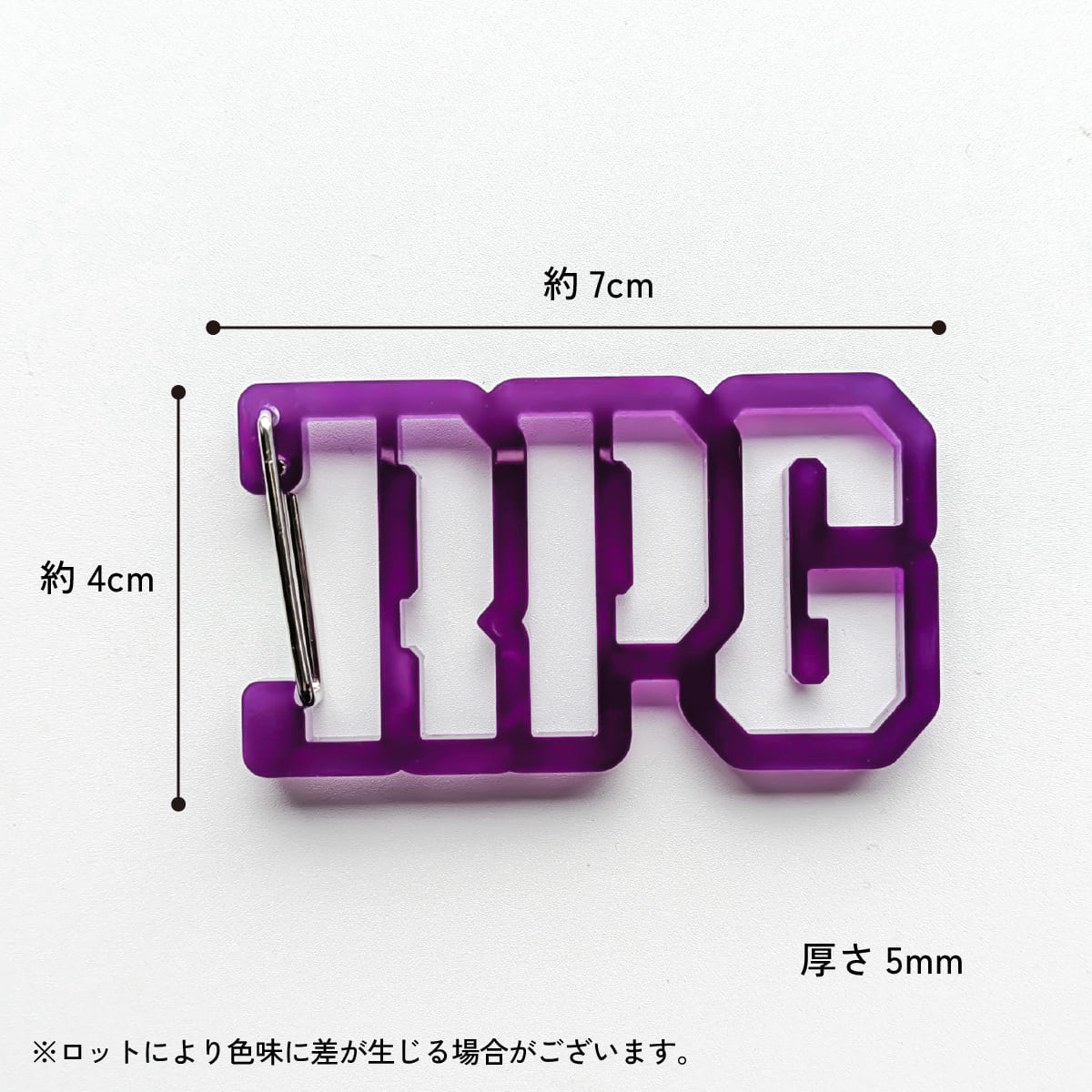 | 注意事項 | アクリル製品はデザインの形状により繊細な部分もあり、衝撃を受けると破損しやすくなる恐れがありますので丁寧にご使用ください。 アクリル製品にアルコールが付着すると割れ等が生じる恐れがありますので、付着しないよう気を付けてご使用ください。 カラビナと名前が付いていますが、アクリル製の商品ですので、鍵やキーホルダー等アクセサリーを吊り下げる程度の強度です。アクリルが細くなった部分、特に開閉レバー取り付け部分はさほど強度がありませんので、 貴重品や重量のあるものは吊り下げないようご注意ください。 また、保証期間等は設けておりません。ご使用中の破損におきましては返品対象にはなりませんので丁寧にお使い下さい。 ロットにより色味に差が生じる場合がございます。 |