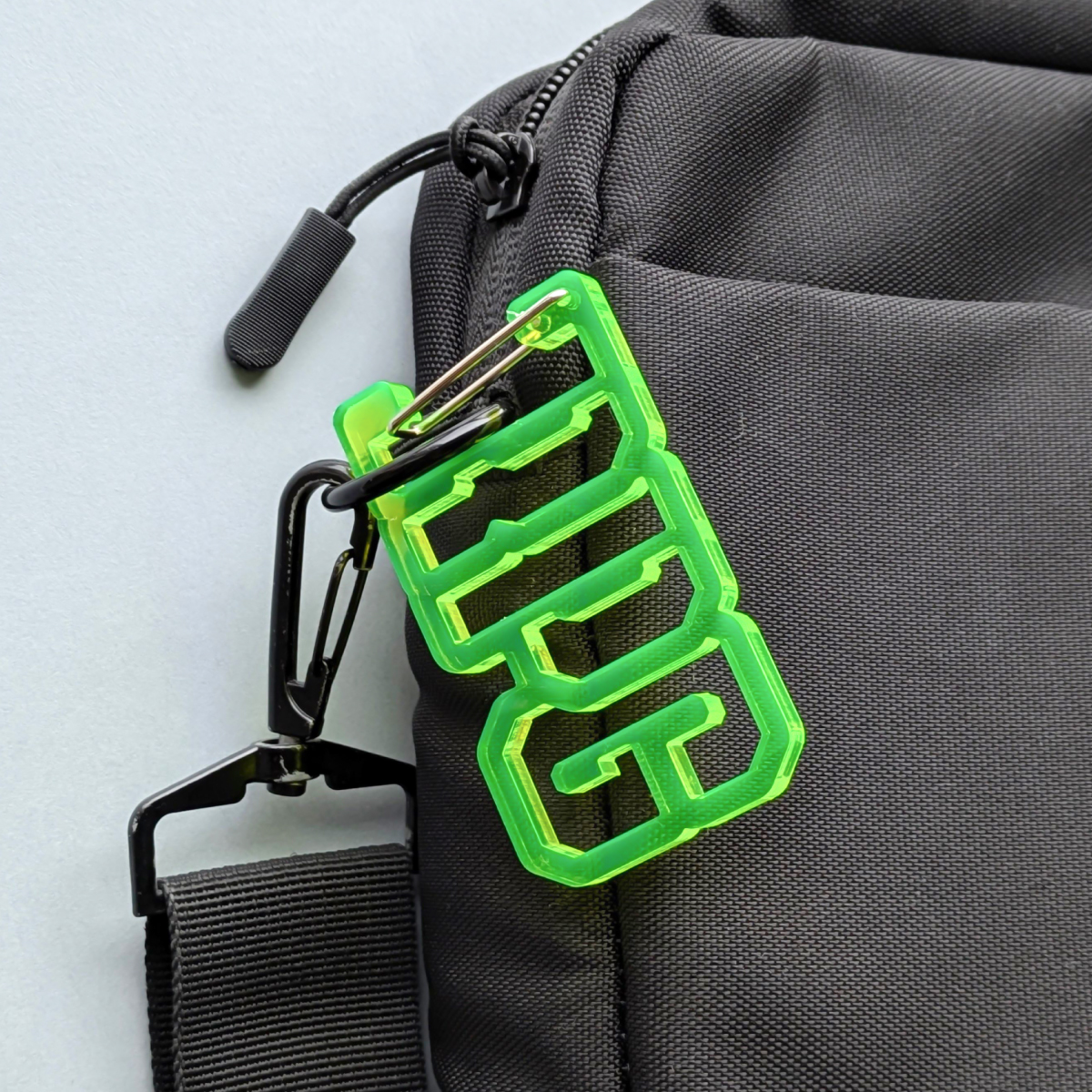 「RPG」の文字そのままをかたどった、ユニークなカラビナ。