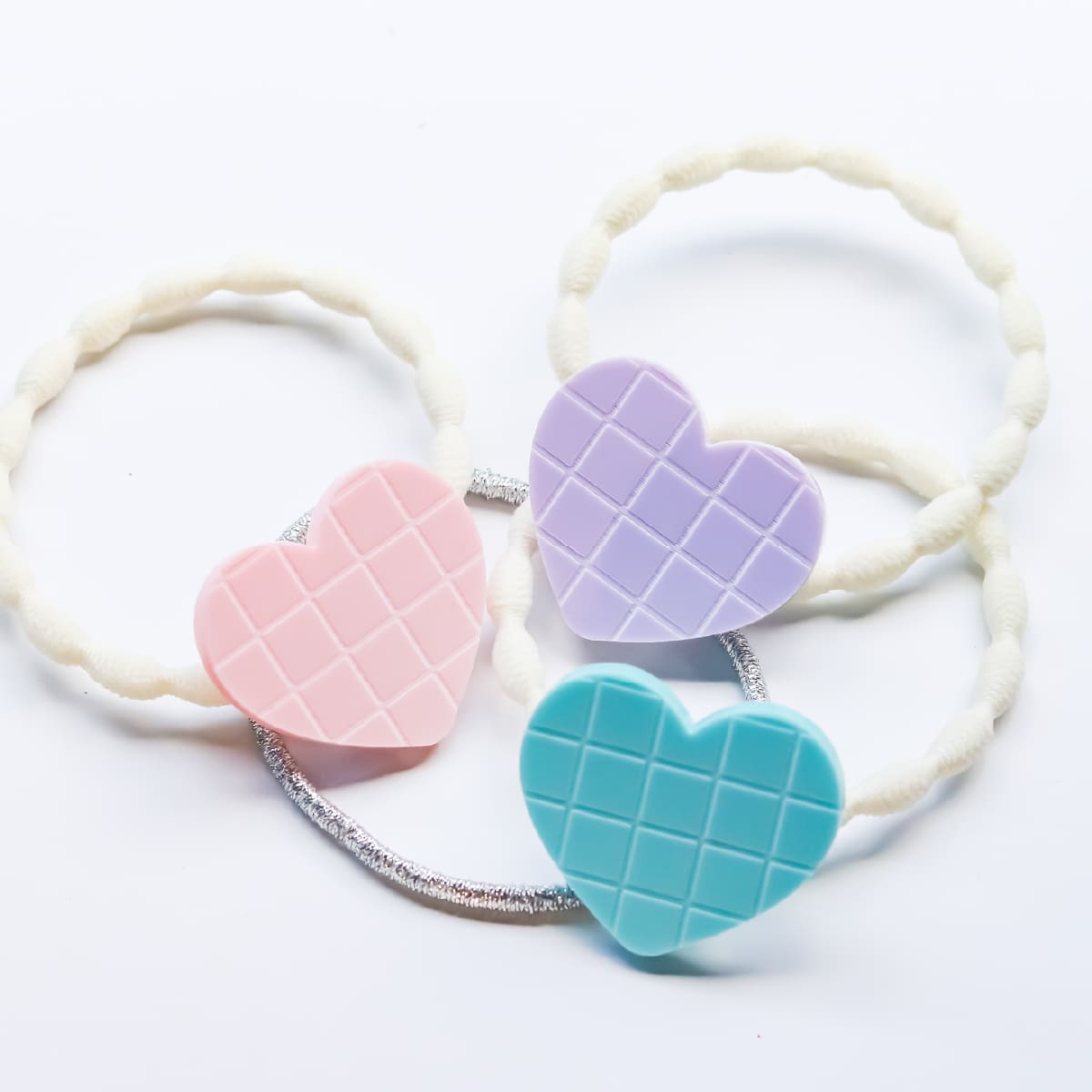 ひそかにかわいく主張できる、パステルカラーのハートヘアゴム♡