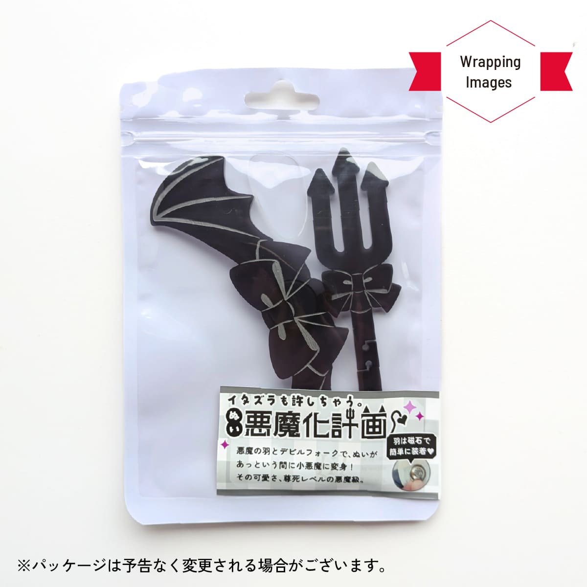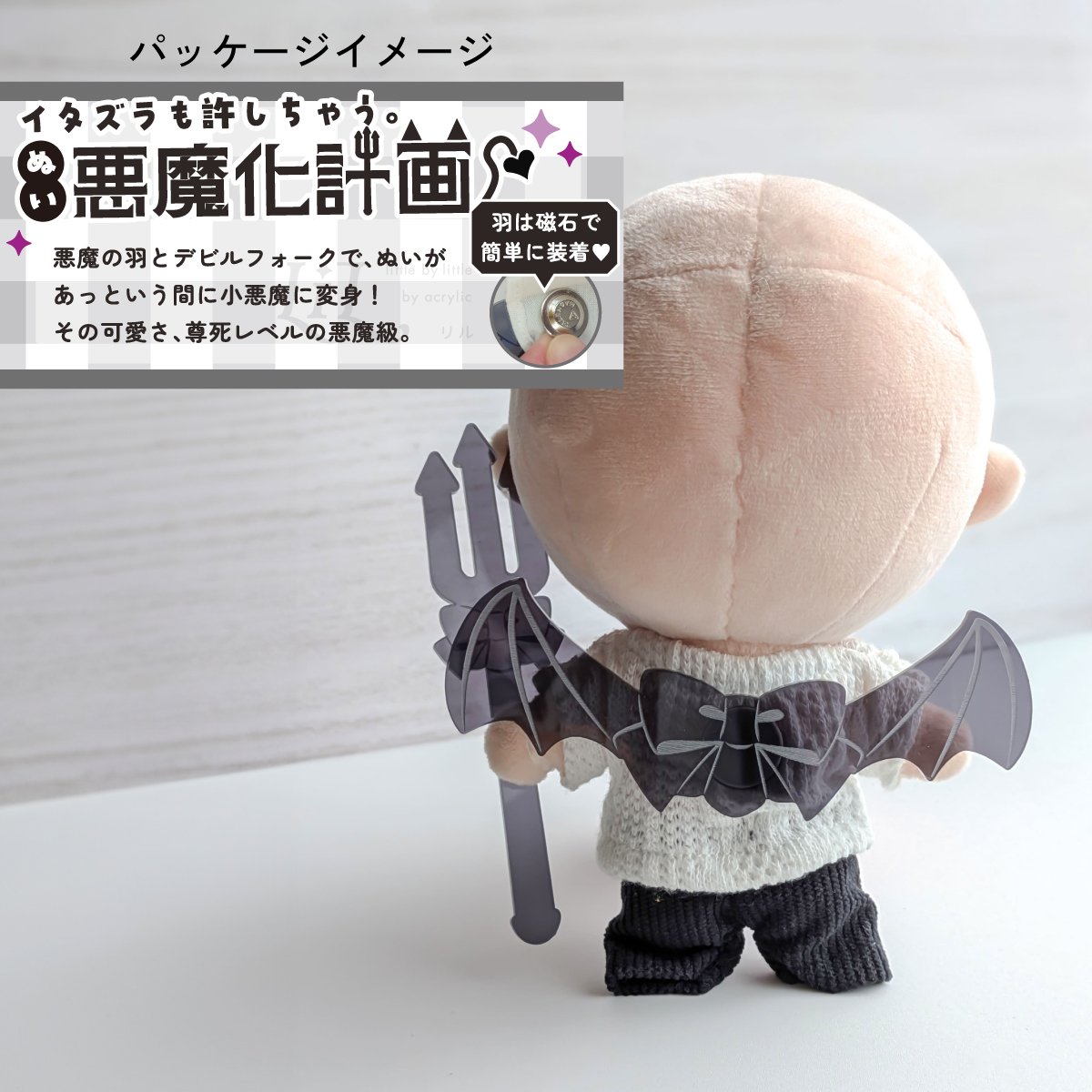 悪魔の羽とデビルフォークで、ぬいがあっという間に小悪魔に変身!