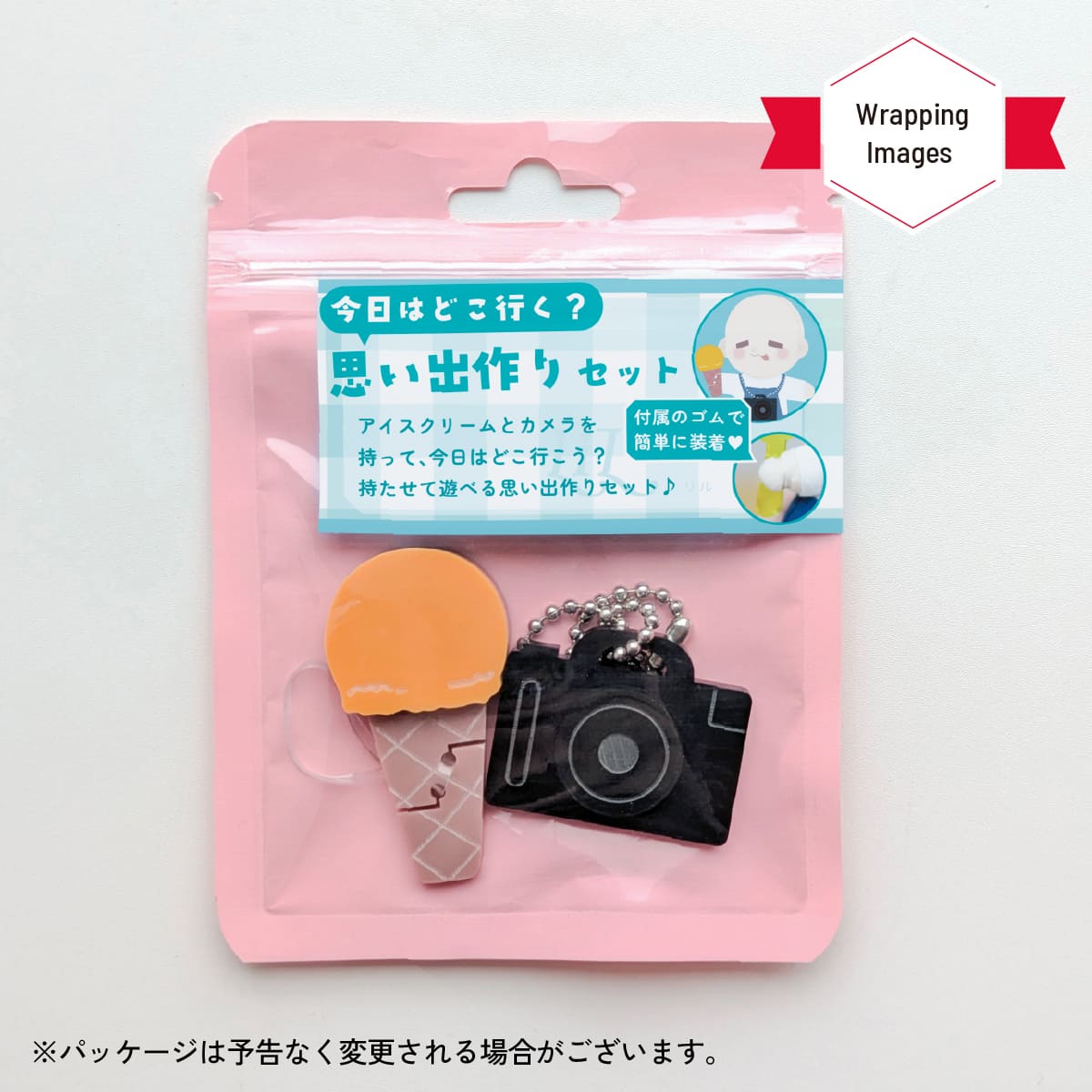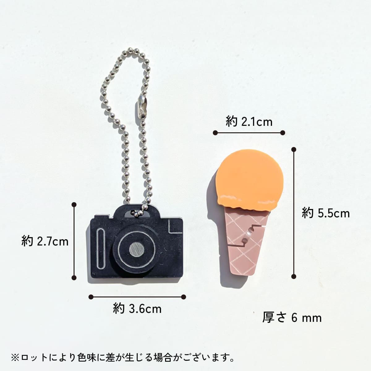 | サイズ | ●カメラ 高さ約2.7cm×幅約3.6cm×厚さ6mm ●アイスクリーム 高さ約5.5cm×幅約2.1cm×厚さ6mm |