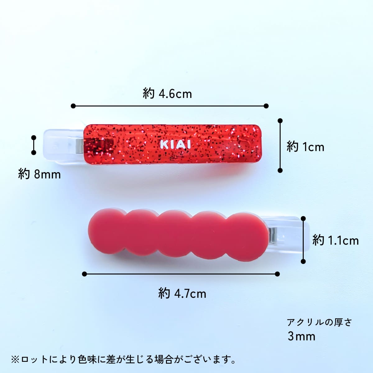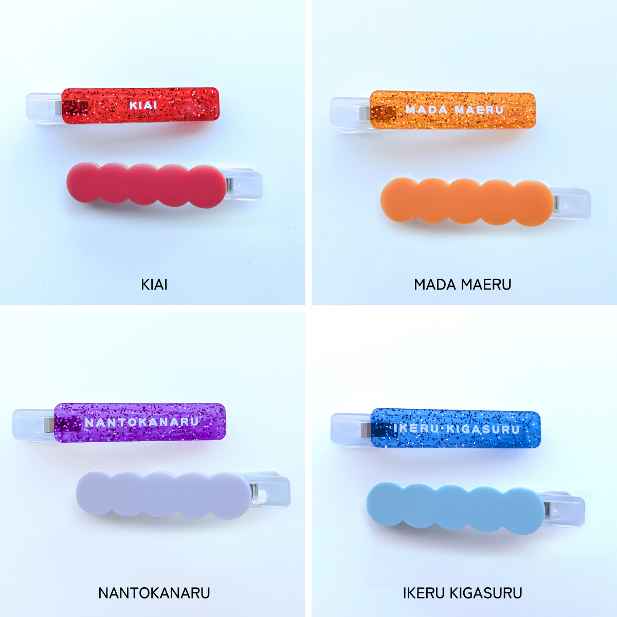 | サイズ | ●どうにかなる言葉ヘアピン: 高さ約1cm×幅約4.6cm×厚さ3mm ●もこもこヘアピン: 高さ約1.1cm×幅約4.7cm×厚さ3mm |