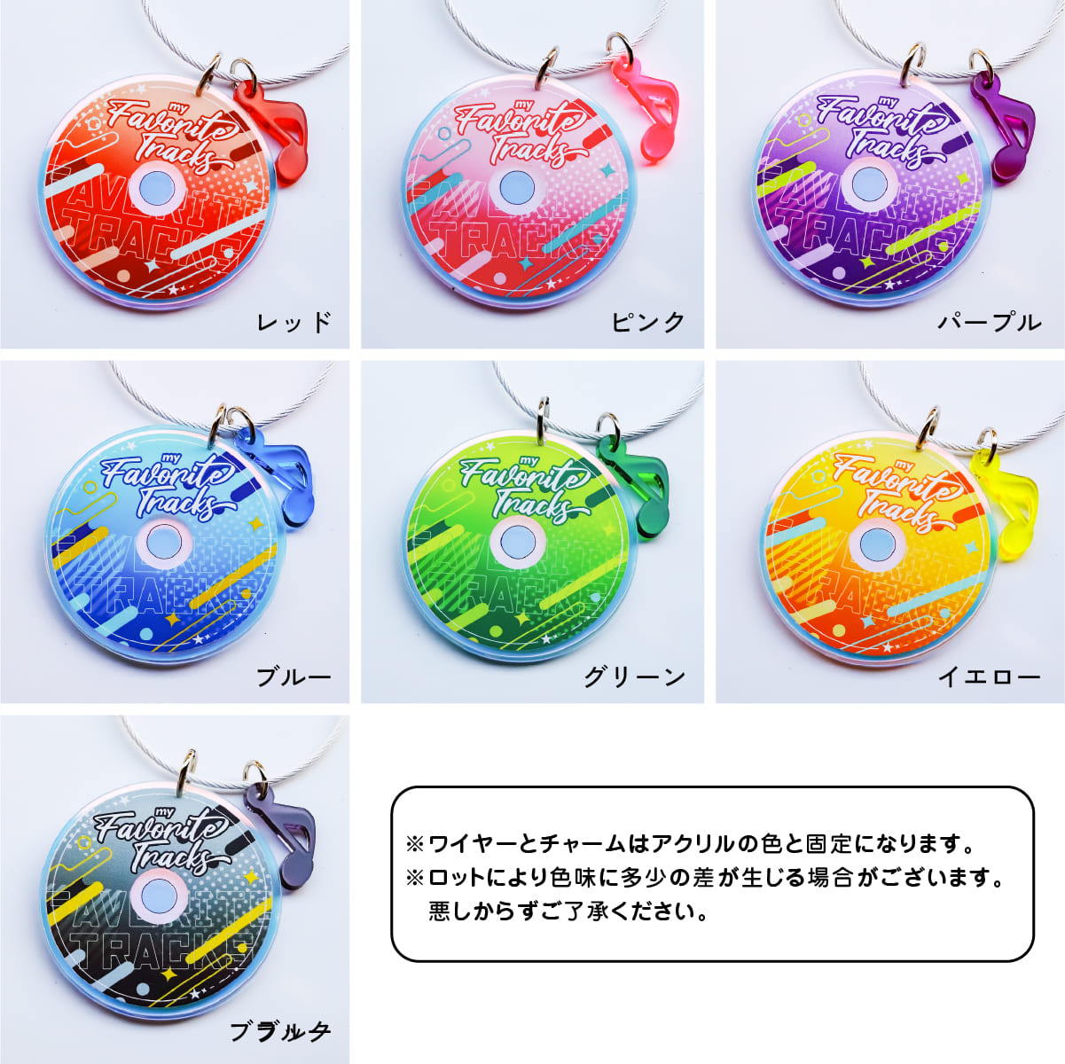 | サイズ | ●CDキーホルダー 高さ約5cm x 横約5cm 厚さ 3mm ●チャーム 各種約2cm 厚さ 3mm ワイヤー込みの長さ:11.5cm |