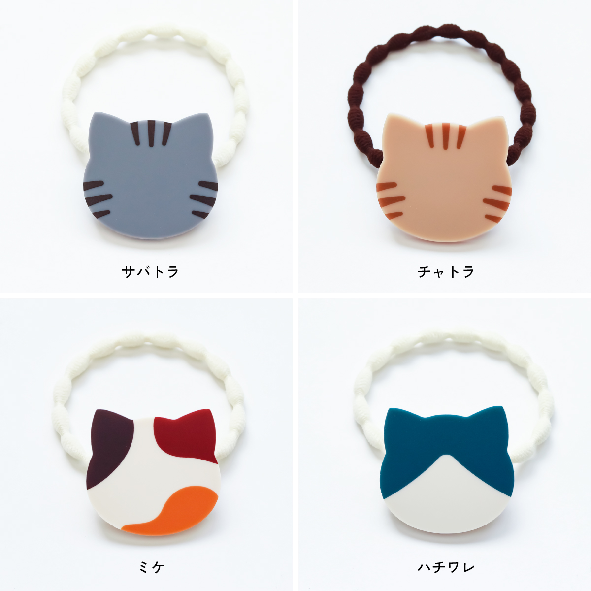 ころんと丸い猫のフォルムが愛らしい、ねこヘアゴム。 シンプルなシルエットに、毛色をイメージした配色が映えるデザインです。 髪に結ぶだけで、さりげなく可愛さをプラスしてくれる日常使いしやすいヘアアクセサリーです。