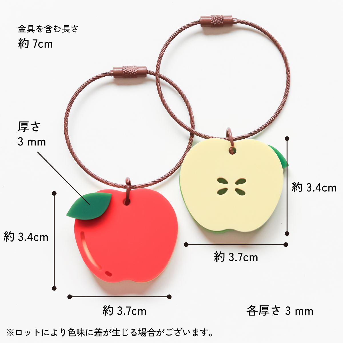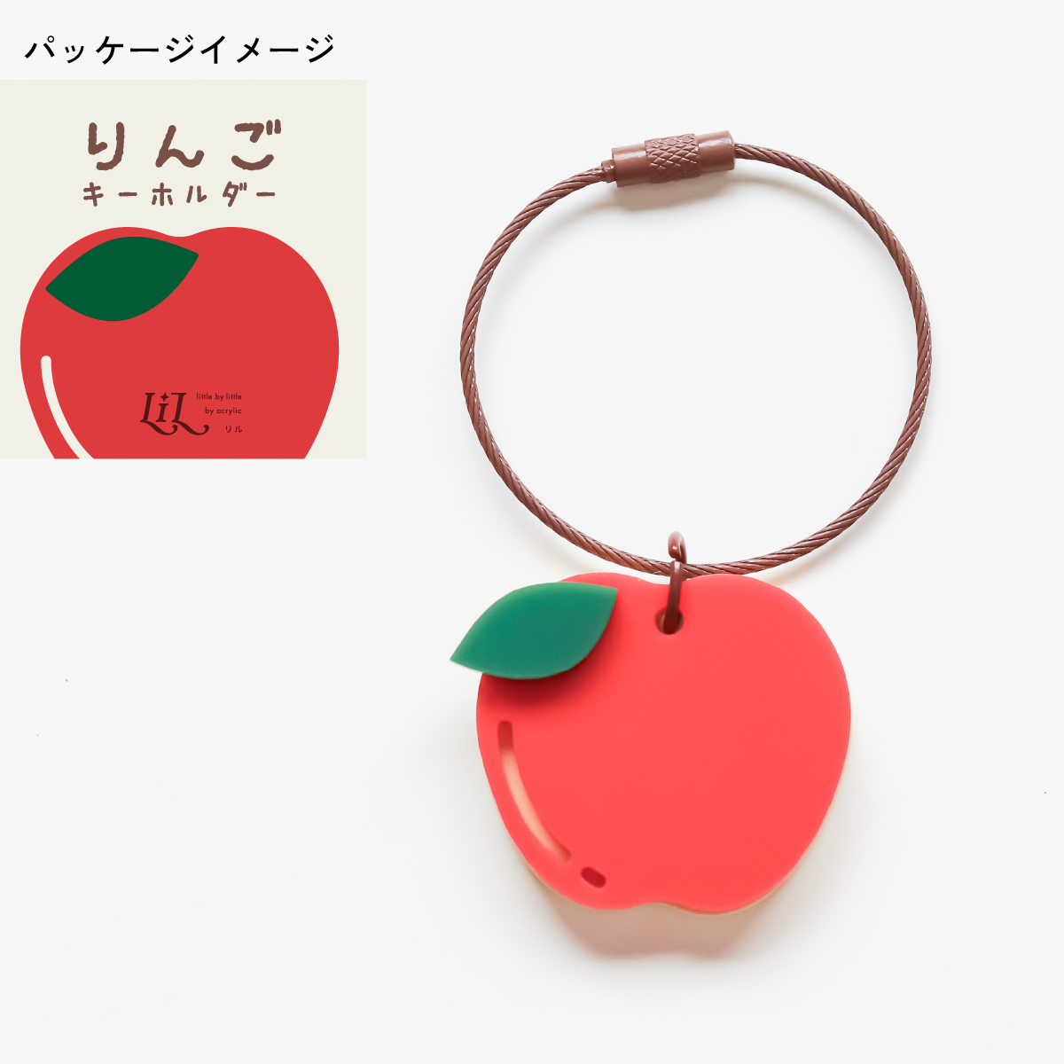 2枚重ねのりんごがゆらゆら揺れるキーホルダー。