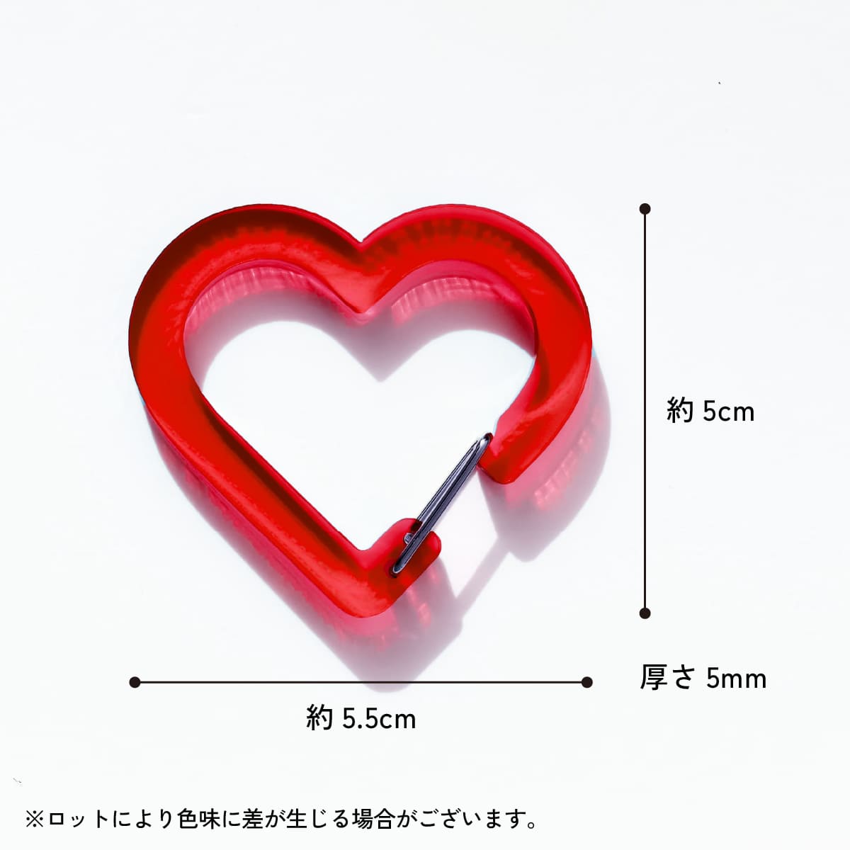 | 注意事項 | カラビナと名前が付いていますが、アクリル製の商品ですので、鍵やキーホルダー等アクセサリーを吊り下げる程度の強度です。アクリルが細くなった部分、特に開閉レバー取り付け部分はさほど強度がありませんので、 貴重品や重量のあるものは吊り下げないようご注意ください。 また、保証期間等は設けておりません。ご使用中の破損におきましては返品対象にはなりませんので丁寧にお使い下さい。