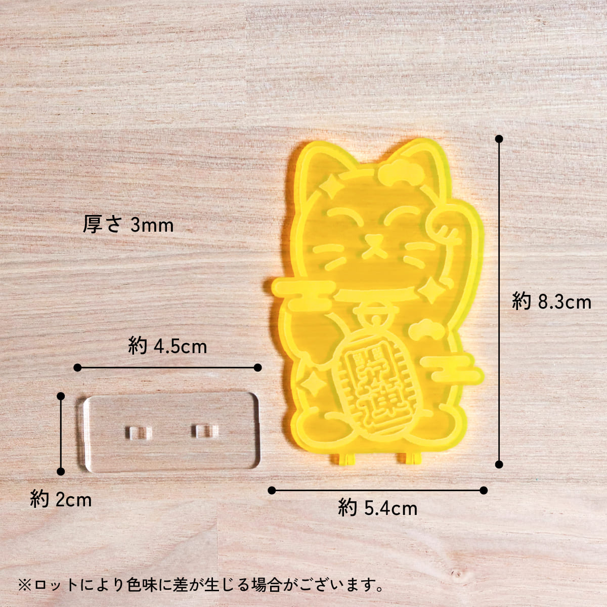 | サイズ | 本体:幅約5.4cm以内×約高さ8.3cm 台座:幅約4.5cm以内×約高さ2cm 共通:厚さ3mm |